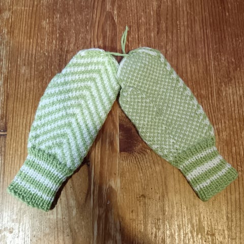 Neulotut villalapaset lapselle, sinivalkoinen kuviolla