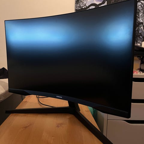 Näyttö on hyvässä kunnossa, ja kuva jotenkin korostaa valovuotoa, jota ei ole sen enempää kuin uutenakaan. Hyvä näyttö, tarkka ja nopea virkistystaajuus. Jalustaa ei ole, katson jos löydän loput seinäkiinnikkeestä. Mukaan tulee virtalähde.