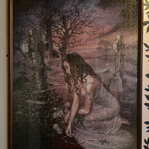 Myynnissä hyvässä kunnossa oleva palapelistä koottu taulu. Korkeus 75cm ja leveys 55cm. Kaupat vain kasvotusten.