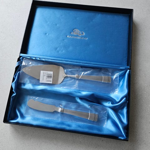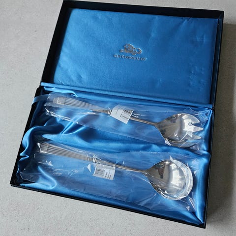 Tähkä sarjaan kuuluvat hopeiset salaattiottimet, voiveitsi ja piirakkalapio