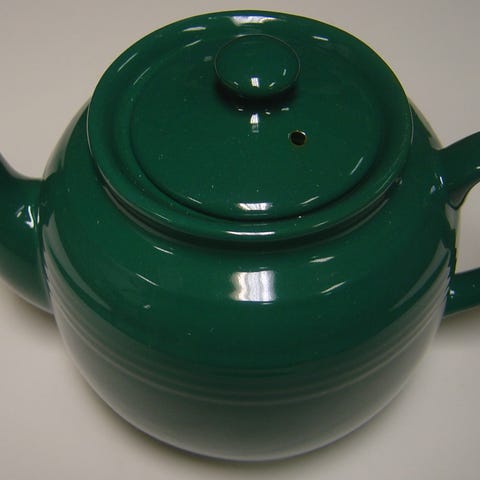Metallinen harmaa teepannu. Sopii hyvin myös koristeeksi tai leikkeihin.