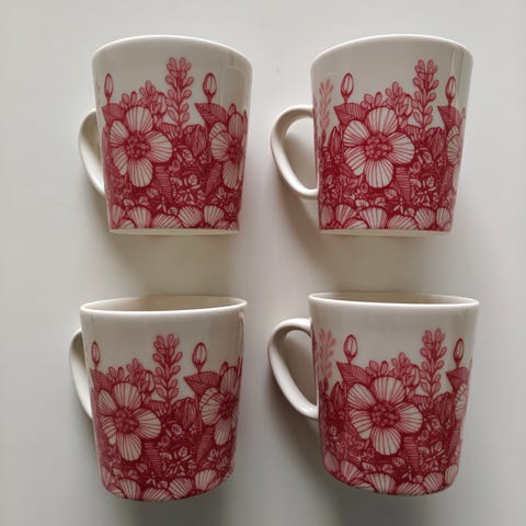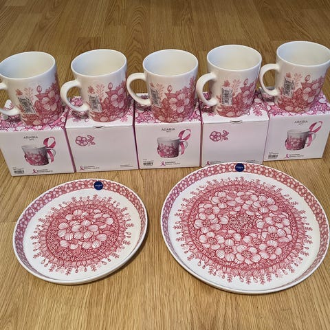 Arabia Huvila muki ja lautanen 24 cm, tarrat, uudet