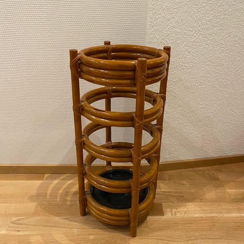 Hyvässä vintage kunnossa rottinkinen sateenvarjoteline.