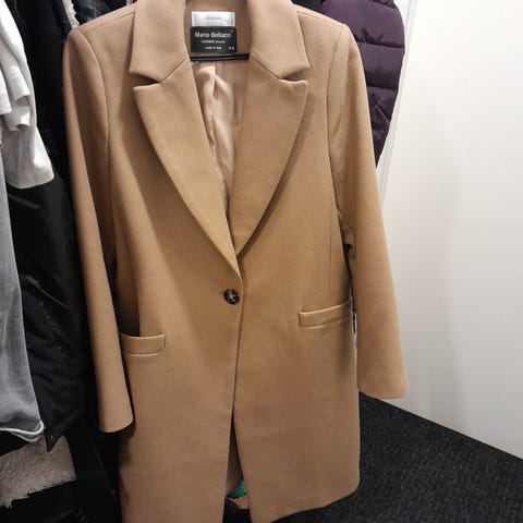 Myynnissä on hyvännäköinen klassisen mallinen takki, jossa irrotettava kaulus luonnonturkista. Kokonaispituus 102 cm. Hihojen pituus 62 cm. Marc Cain koko 4. Materiaali: 50% kashmiri ja 50% virgin wool.