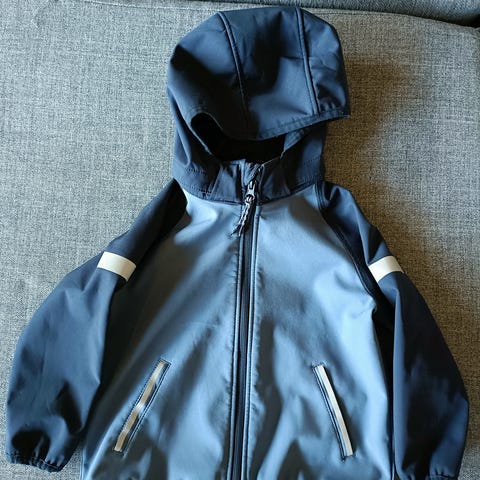Icepeak softshell-takki, kokoa 98. Sininen-kirkkaan oranssi väriltään. Takin etumuksesta ja takaa helmasta on kulunut 'icepeak' -teksti, muuten hyvässä kunnossa.