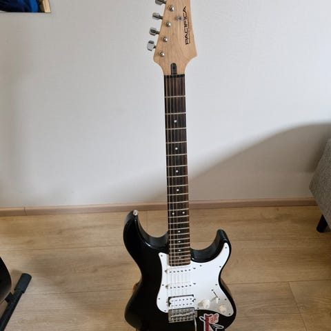 Electric Yamaha guitar. Strings is attached little bit to high and requires some work to be comfortable to play. Works otherwise. Have not been used in a long time and needs to be taken care of.
