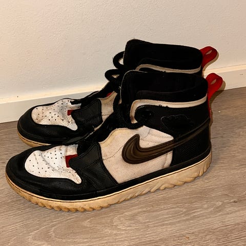 Mustavalkoiset Air Jordanit. Koko 43. Käytönjälkiä löytyy. Itsellä jäänyt käyttämättä koska jäi pieneksi. Mukaan saa kuvissa näkyvät kullatut Suprem kengännauhan päädyt (lacecaps). Www.suprem.fi