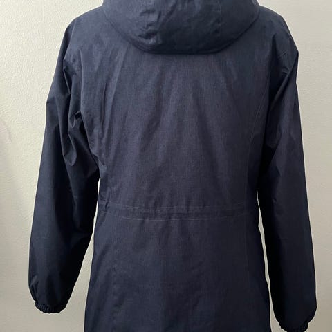 Tummansininen vähän köytetty Skilan kevyttoppatakki, koko 36. Kai kai mitta edestä mitattuna 50cm ja olka helma mitta 85cm. Vain nouto Tikkurilasta