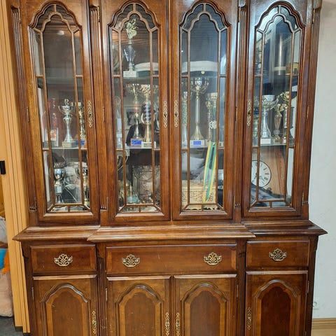 Kaunis konjakkikaappi on valmistettu mahongista ja siinä on lasiseinämät ja ovet sekä koristeellinen reunus. Kaunis esine erityisesti juomien ja kauniiden lasien säilytykseen, esillepanoon sekä tarjoiluun. Päältä löytyy soikea irrotettava tarjotin.
