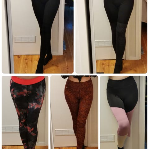 Muutama pesussa lähtemätön meikkitahra valkoisissa osissa mutta niitä ei huomaa ellei niitä hakemalla hae. Tägit kuluneet. (katso kuvat) Muuta valittamisen aihetta ei ole. Hennompi pito verrattuna muihin urheilu legginsseihin eli ei kiristä epämukavasti vatsan kohdalta. Kiristää tarpeeksi mutta ei liikaa. Mukavat urheillessa siis. 91% polyesteriä 9% elastaania.