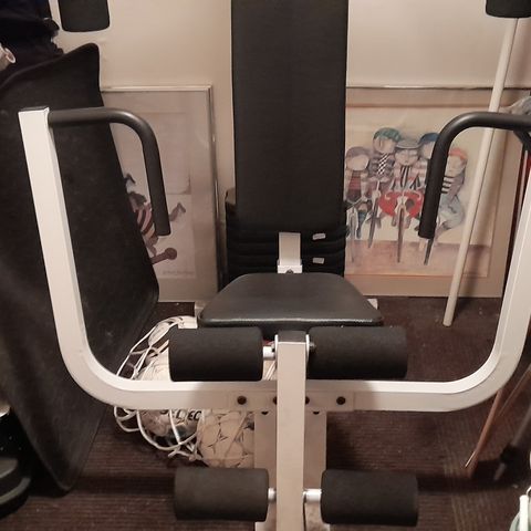 Wender Pro 4500 on kuntosalilaite, jossa on punainen istuin ja mustat pehmustetut kahvat. Laite soveltuu monipuoliseen voimaharjoitteluun kotikäyttöön.