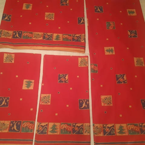 Hyväkuntoiset jouluverhot 4 kpl, koko n. 195x85 cm ja 2 verhotamppia