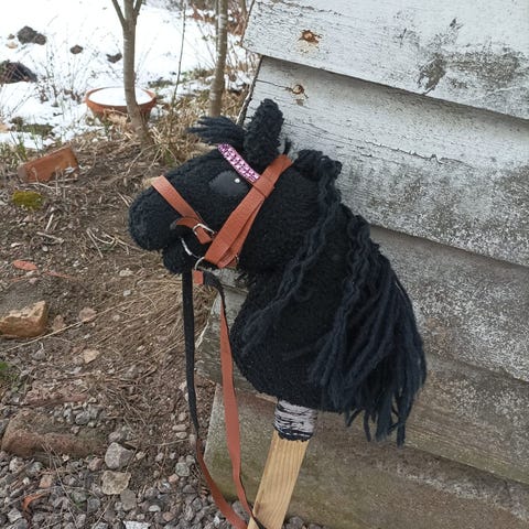 Myydään hyväkuntoinen keppihevonen. Keppari on Gegen Keppihevostallin käsialaa.