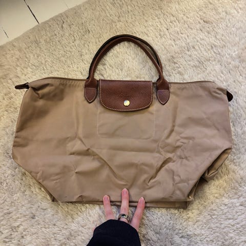 Longchamp Canvas laukku merkille tyypillisin, nahkaisin yksityiskohdin