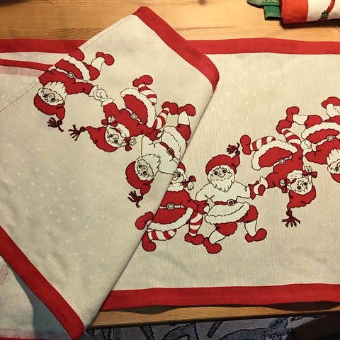 Punavalkoinen tonttuaiheinen kaitaliina, koko noin 81x19cm. Kaksi pientä tahraa, jotka näkyvät kuvassa 3. Nouto Valkeakoskelta tai ToriDiili. Katso myös muut jouluaiheiset ilmoitukseni. Mahdollista yhdistää useampi samaan pakettiin.