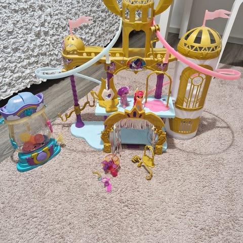 My Little Pony leikkisetti sisältää linnan, muutaman hahmon ja useita lisätarvikkeita. Ollut vähässä leikki käytössä.