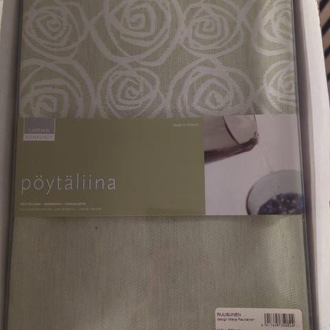 "Jacquard-tekniikalla kudottu kotimainen Kehrä-pöytäliina on pellava-puuvillaa. Kehrä-kuosin on suunnitellut suomalainen tekstiilisuunnittelija Sari Myöhänen. Pöytäliinan materiaalina ovat Mas ters of Linen -laatuinen aivinapellava ja kampapuuvilla, joka on valmistettu Öko-Tex-standardin mukaisesti. Tuotteelle on myönnetty avainlipputunnus.