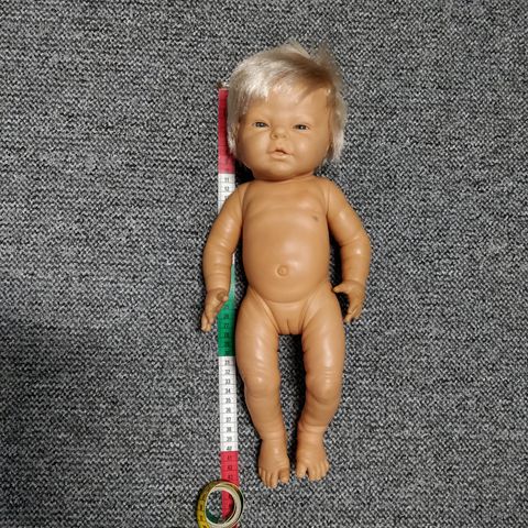 Nukkea on käytetty todella vähän ja se on erinomaisessa kunnossa. Toinen käsi menee päähän ja toinen nuken käteen.