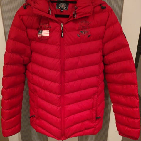 H&M paksu talvitakki, väreinä punainen ja tummansininen. Irrotettava huppu. Koko 170. Kunnossa ei mitään moitittavaa.