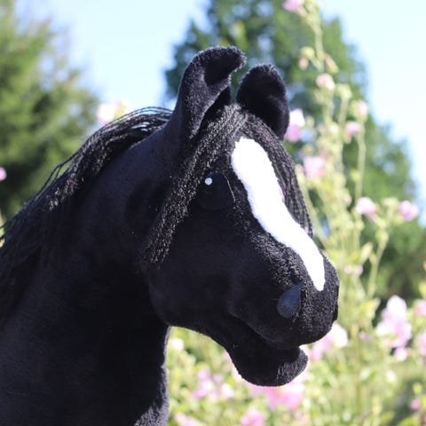 Musta perushyvä keppihevonen myynnissä. Kuvien hienot varusteet tulevat myös mukaan. Kepparin tekijää ei tiedossa.