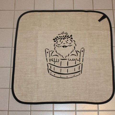 Uusi pellavasta ommeltu laudeliina/pefletti n.45x45cm, käsinpainettu saukko kuva.