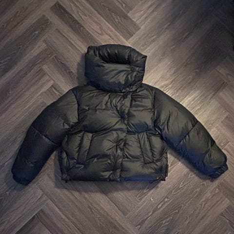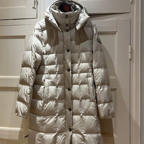 Oliivinvihreä untuvatakki jossa edessä neljä taskua. Kaksisuuntainen vetoketju, jämäkkä hyvin muotonsa pitävä materiaali, lämmin, korkea kaulus joka suojaa tuulelta sekä helmassa kiristys.