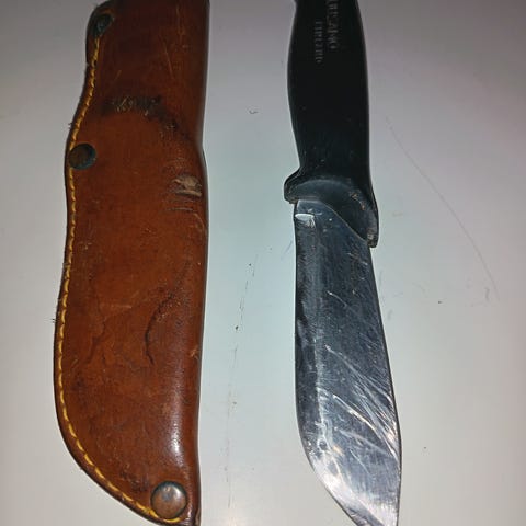Harvinainen metsästyspuukko. Nämä ovat keräily esineitä. Kuusamon uistin puukko. Kokonais pituus 19,5mm, terä itsessään 85mm. Kaiverrukset terässä - Kuusamon Uistin, Metsästys, Steinless.