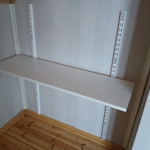 3kpl metallisia vaatehuoneen seinähyllyjä kannattimineen.
