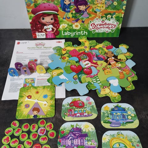Mansikka-Marjan Labyrinttipeli. Sopii 5+ vuotiaille, 2-4 pelaajaa kerralla. Hyväkuntoinen pakkaus ja kaikki osat tallella.