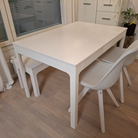 Ikea ekedalen pöytä ja neljä tuolia. Joitain käytön jälkiä tuoleissa. Kuljetus Tampereen alueelle onnistuu lisämaksusta