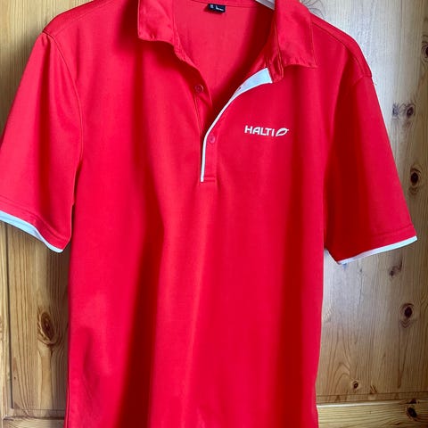 Myydään miesten aito uudenveroinen Halti merkkinen laadukas T- paita. Koko L.hartiat leveys 45 cm,pituus 81 cm.100% polyesteria vri harmaa punaisin merkkinen.takana Palanderin logo.