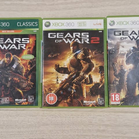 Microsoft Gears of War Xbox 360 -peli, Game of the Year Edition. Ikäsuositus 18+. Peli sisältää koko sarjan ja on tarkoitettu Xbox 360 -pelikonsolille. Peli uusi muoveissa, muovit virheettömät