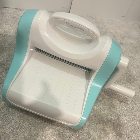Heidi Swapp Cinch sidontalaite paperin ja muiden materiaalien sitomiseen. Laite on valkoinen ja vaaleanpunaisin yksityiskohdin. Käytetään esimerkiksi askarteluun ja muistikirjojen valmistukseen.