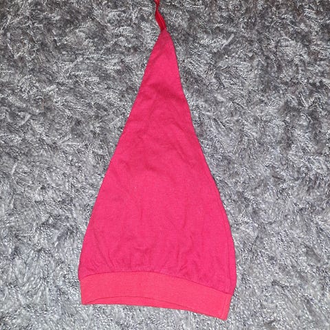 Ruskea rusettitonttulakki laadukkaasta trikookankaasta, ompelijalla teetetty. Noin 1-2 vuotiaan päähän sopiva.