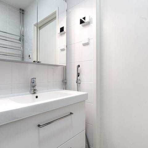 Valkoinen kylpyhuoneen allaskaappi ja allas