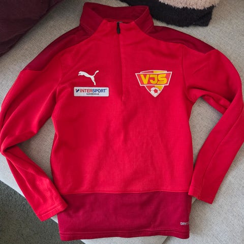 Punainen pitkähihainen treenipaita. Sopii urheiluun. Paidassa painotukset kuluneet.