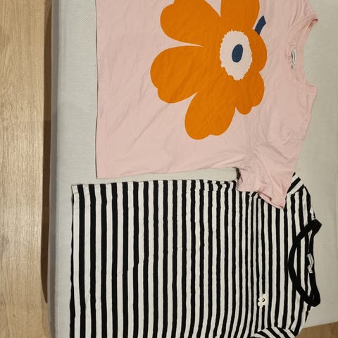 Myydään 2kpl marimekko tasaraita paitoja koossa S. Unisex mallia. Käytetty mutta tahrattomat ja ehjät. Ei ole silitettynä kuvassa. Kainaloiden kohdissa saattaa olla kirkkaassa valossa hieman tummentumaa mutta lähtenee valkopesulla/tahranpoistolla. Yritin ottaa kuvaa mutta hieman huonosti näkyy. Molemmat yhteishintaan 30e tai 20e kpl. Nouto lpr keskusta tai toridiili.