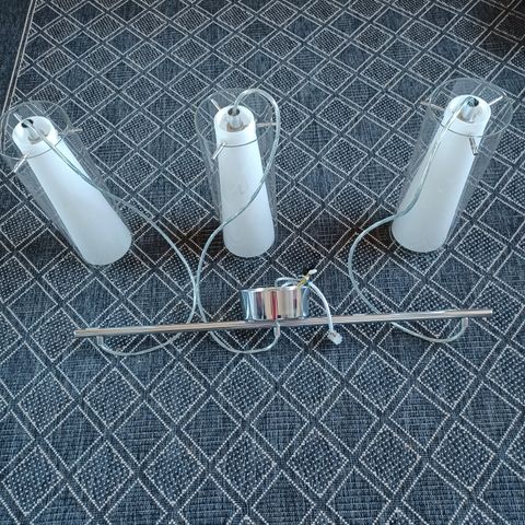 3 valopisteen valaisin, pronssiväristä metallia ja vaaleaa lasia.