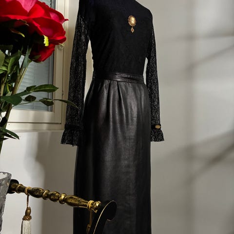 Käsityönä Satanahkatehtaalla ommeltu hame on siisti. Nahka pysynyt ehjänä, nahan pinta kulumaton.