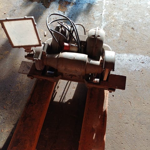 jalustalla, voimavirta, pyörii erittäin nätisti, kivi hyvässä kunnossa, ollut viimeiset yli 30 vuotta kotitalli käytössä eli melko vähällä, hinta 200e, en tingi koska tätä voi vielä tarvia itekkin, vain nouto, käteismaksu ja tasaraha mukaan,