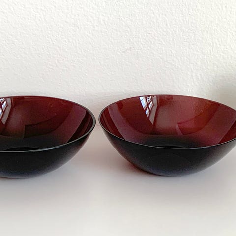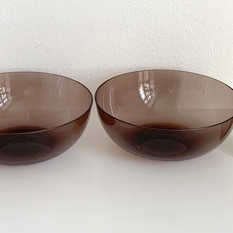 Kaksi sinistä, ohutta ja siroa lasikulhoa. En ole varma ovatko Kaj Franckin Nuutajärvelle suunnittelemaa mallistoa. Nouto Helsingin Kampista.