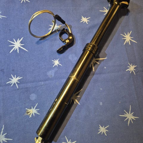 Polkupyörän satulan hissitolppa ulkoisella vaijerilla.