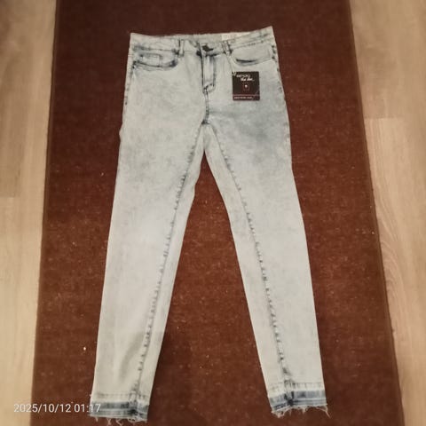 Myydään tarpeettomana kuvan mukaiset farkut joissa lahkeissa nyörit.