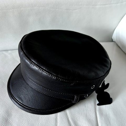Lippalakki vaaleanruskeaa nahkaa, vuori tikattu toppasatiinikangas, koko S (56)