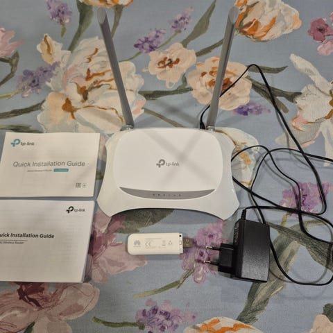 Huawei reititin valkoinen, varustettu useilla Ethernet-portilla ja langattomalla yhteydellä. Laite sisältää kaksi ulkoista antennia ja on suunniteltu kotikäyttöön langattoman verkon jakamiseen.