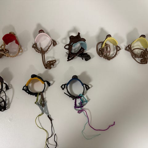 Schleich satula, satulavyön kärki katkennut. Ja suitset, joista puuttuu ohjat.