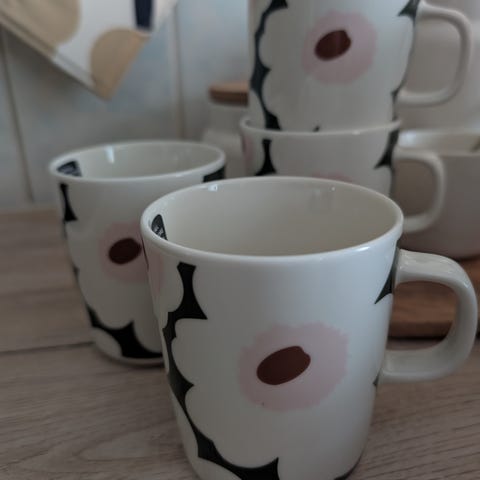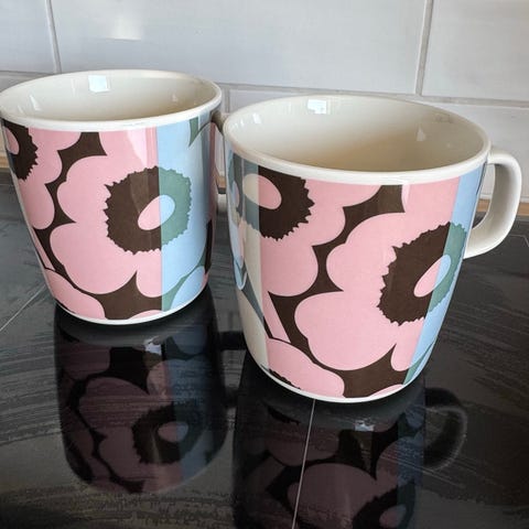 Marimekko Juhla Unikko mukit 2kpl. (2,5dl) Tummanpunainen. Tarrat paikalla.