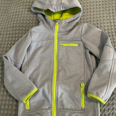 Ciraf merkkinen softshelltakki koko 110. Hyväkuntoinen, siisti ja ehjä vaalean harmaa takki. Vetoketjut toimivat. Takissa vetoketjulliset taskut, neppareilla irroitettava huppu.