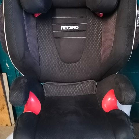 Siistikuntoinen Recaro turvavyöistuin. Ollut uudesta asti kakkospenkkinä.