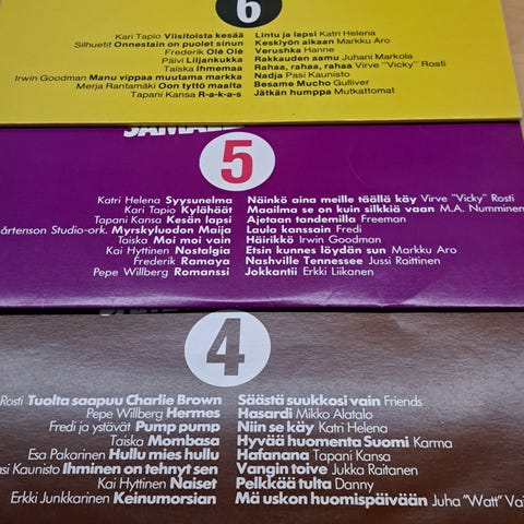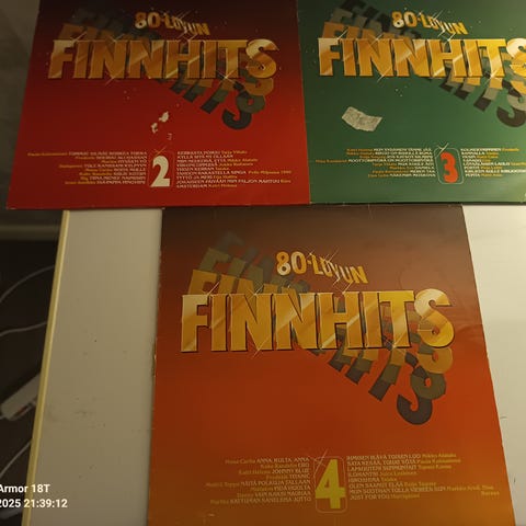 80 luvun Finnhits 4, Finnhits 15 huippuhittiä ja Finnhits 14 huippuhittiä. Myyn toki myös erikseen, mutta jos ostat kerralla useamman muunkin levyn, niin saadaan kyllä hintaakin sorvattua alaspäin